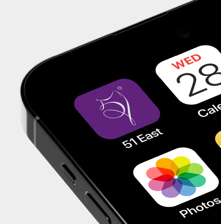 The identity comprises an extended word mark working with a stylish numeral treatment of 51 degrees. Purple, at one time the most expensive colour pigment from the far East was chosen as the brand’s signature colour; a colour capable of conveying affluence, regal luxury and status.  The purple Arabic numerals executed with flair have now become a mnemonic device for Fifty One East.