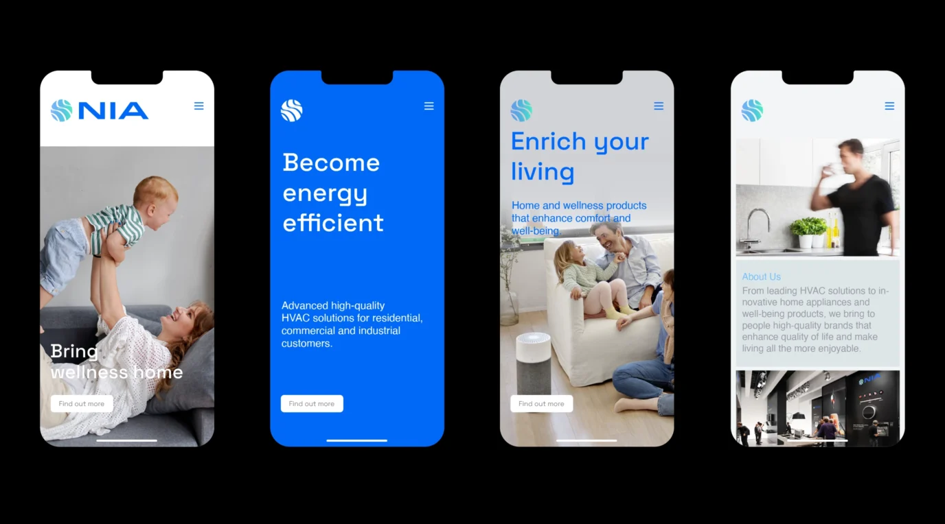 Building on these findings we developed Nia’s strategic platform that highlights Nia’s continuous endeavour in ‘Making Life Better Every Day’. Nia understands that quality of life is never to be overlooked, which is why with its selection of high-quality living and well-being products and its innovative HVAC solutions Nia is focussed on enriching lives every day.